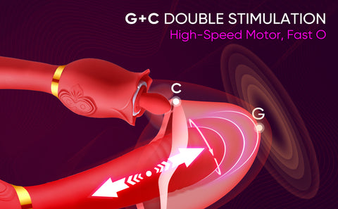 Our rose toy for women with a combination of a tongue licking sucking thrusting' to offer you dual stimulation. Both parts have multiple speeds and settings that can be controlled easily, you can use one part of the rose vibrator by itself if you don't want to use them at the same time.