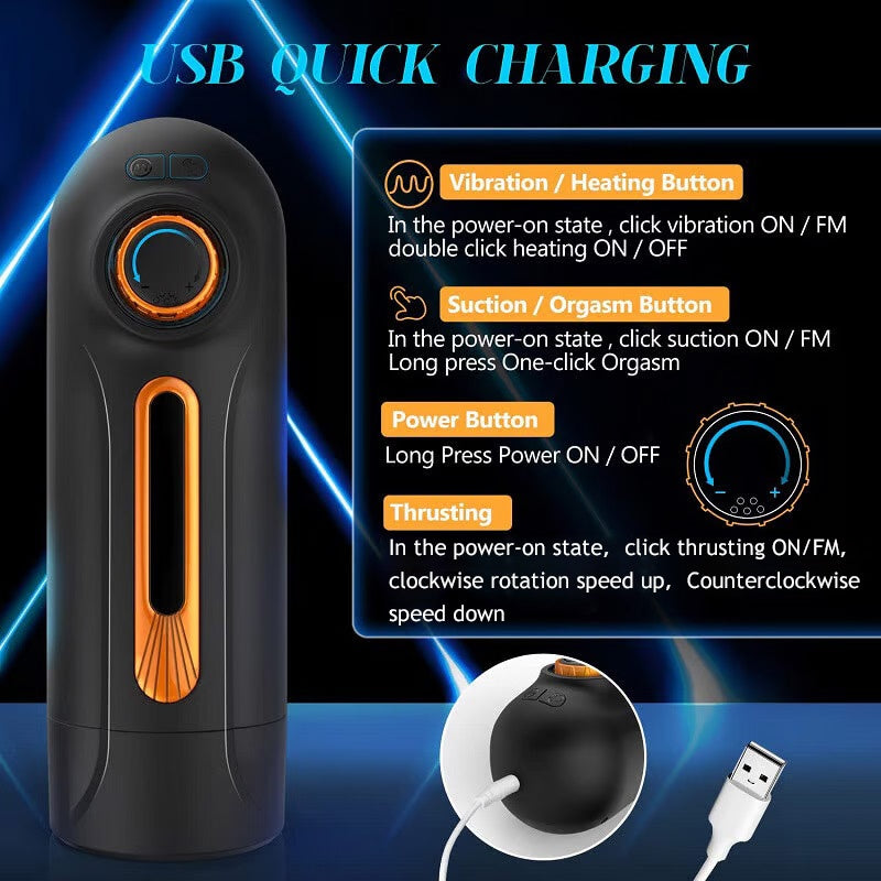 This automatic male masturbation cup is beyond imagination! Multifunctional (thrusting, sucking, vibration, heating, and sound modes) combined with 3D realistic textures provide the ultimate enjoyment. What is particularly worth mentioning is that the heating function takes the whole experience to the next level, giving people a very close to real body temperature feeling.