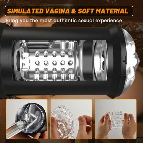A handsome Masturbation Cup works with 5 Suking and 5 telescopic and 5 Rotating modes together with a tight vulva down and up to stimulate the most sensitive glans to make you explode in a massive wave of orgasmic pleasure. Features a soft lifelike vulva with TPE orifice simulating the process of spitting and making it easy to insert and bring you to an incredible orgasm.