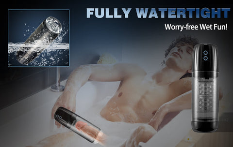 Thanks to the new technology, you can fill the masturbator cup with ice & cold water to train your little man’s sensitivity, then fill it with warm water to provoke your desire. In this way, you can continuously train your shaft to strengthen the pleasure of climax. You can enjoy the sucking and rotating under water which can bring you distinctive sensations that you never experienced before. No matter in the bathroom, tub or swimming pool.