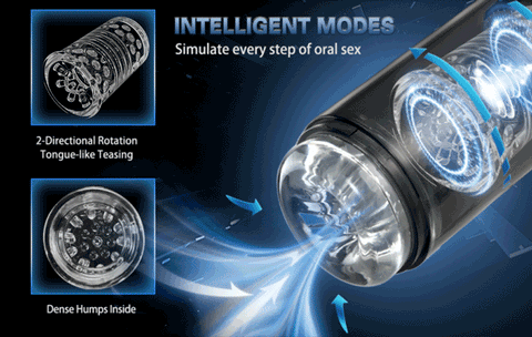 With 7 sucking & 7 rotating modes, our sex toys for men can take you from zero to climax quickly. The vacuum suction from gentle to wild imitating oral sex sucking will make you get aroused more quickly, and the high-speed bidirectional rotating can lead to a more intense climax. The soft sleeve is studded with 59 pleasure nubs and teasers which can tightly clamp your little man and massage your sensitive shaft with every stroke.