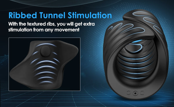 Smooth Soft Silicone with a Ribbed Tunnel Interior - This sex toy for men is crafted from the most silken of skin-friendly silicone, a stretchy material that keeps you comfortable. This male masturbator boasts one strong motor plus a super-textured tunnel, taking pleasure to the next level. This male masturbator features an open-ended textured tunnel with a 3.4-inch length that gives intense sensations up and down the shaft, while Intensely vibrating for better masturbation