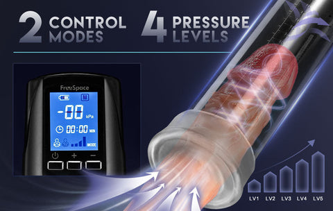 One-button automatic suction is easy to use and more convenient than manual. 2 control modes of this penis pump for you to choose from: intelligent constant pressure mode and manual pressure mode. You can choose mode 1 to keep a constant pressure value or mode 2 to experience an intelligent cycle of 4 different pressures.