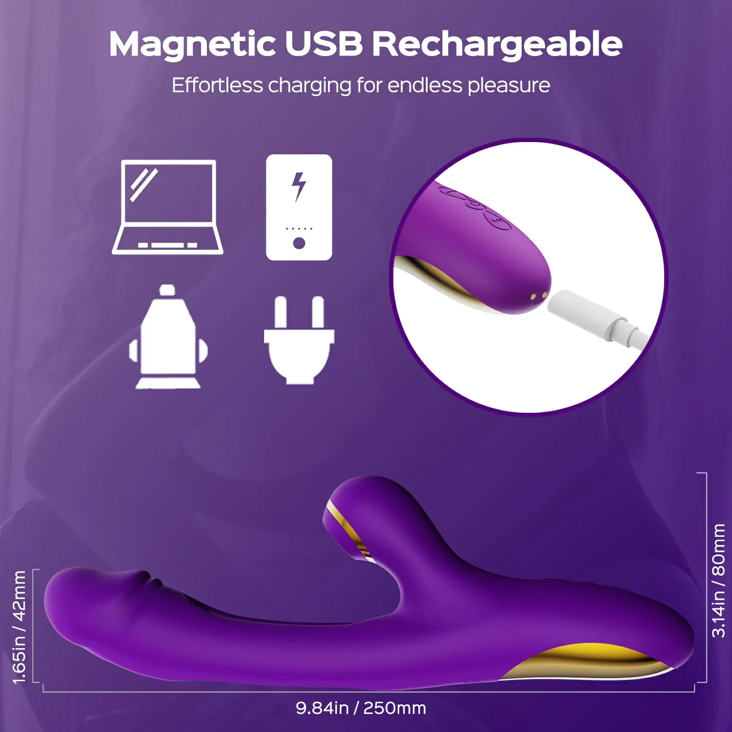 - Modes: 7 Vibrating, Tapping & Sucking Modes.