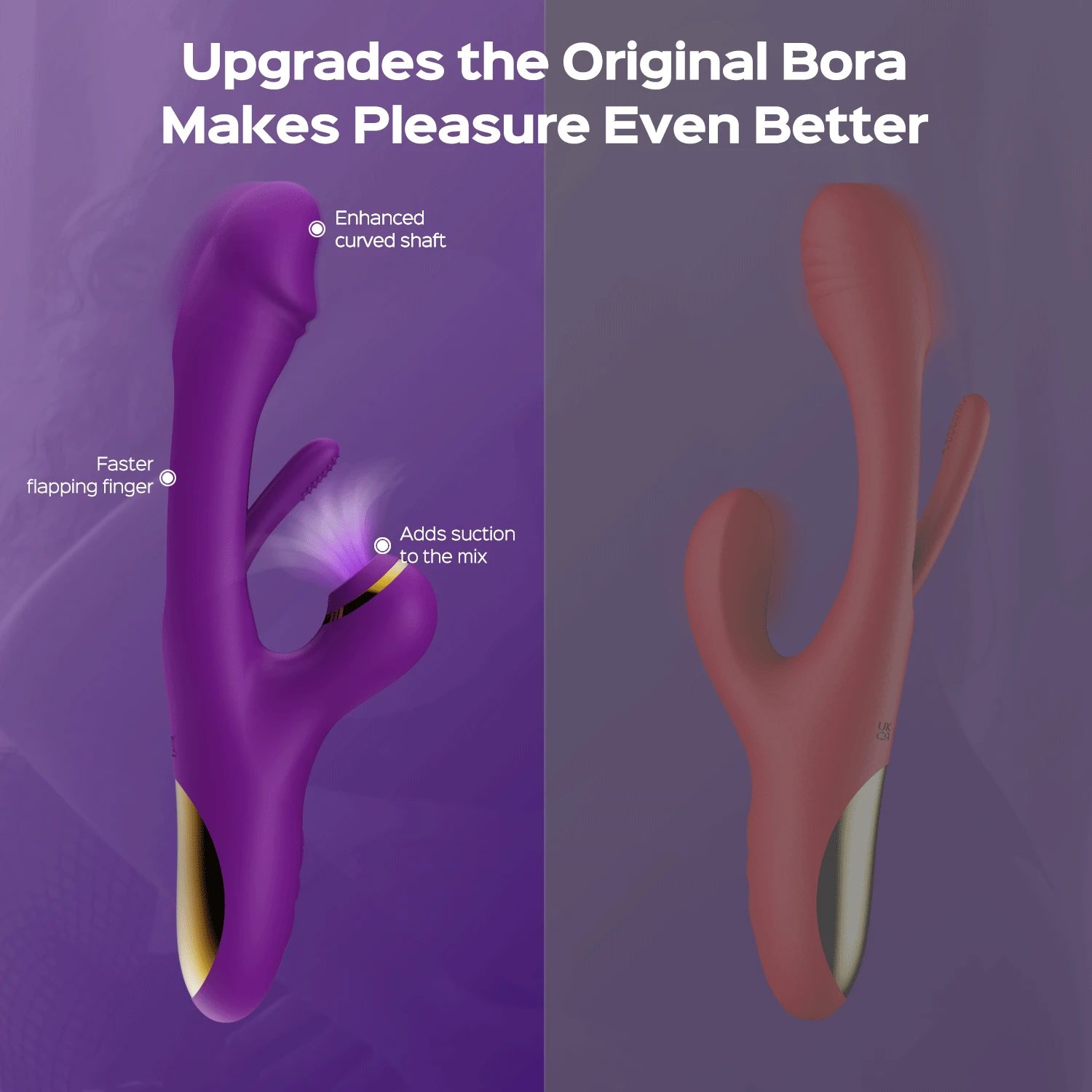 Its main shaft boasts an innovative hollow design, surrounding a finger-inspired tapping stimulator with a bumped texture, specifically designed to tease your G-spot with 7 tapping modes. Its tapping motions replicate the sensation of fingers tapping your G-spot, with its raised texture intensifying the stimulation even further. The main shaft also features a slightly textured bulbous head, made to target your A-spot with 7 robust vibration intensities and patterns. If you’re looking for even more joy, we’ve got you covered. This amazing toy’s short end is a clit-sucker with 7 amazing suction intensities. It's a powerhouse of amazing pleasure possibilities, providing you with countless opportunities for blended orgasms!