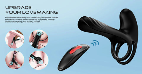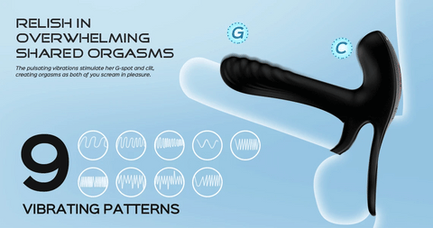 Flexible cock rings fit securely around the penis and balls, while the vibrating ribbed shaft sleeve tantalizes you. The contoured clit teaser perfectly stimulates your partner’s clit during penetration for the ultimate mutual delight. With the convenient remote control, you can easily switch through the nine arousing vibrating modes and stay focused on pleasure with internal and external stimulation, making your intimate moments unforgettable and enjoyable.