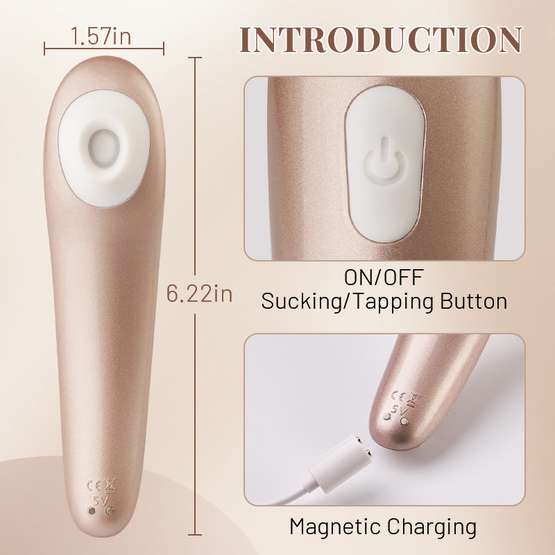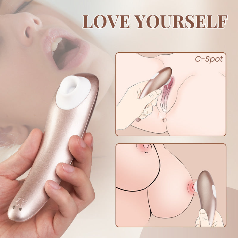 - Handle-shaped clitoral sucker in champagne, high visual recognition.